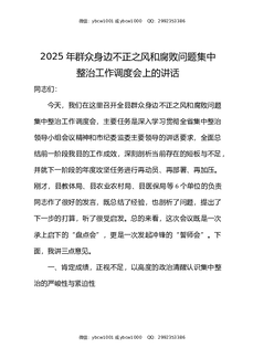 2025年群众身边不正之风和腐败问题集中整治工作调度会上的讲话.docx