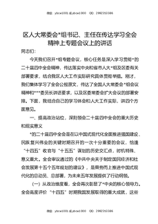 区人大常委会党组书记、主任在传达学习全会精神上专题会议上的讲话.docx