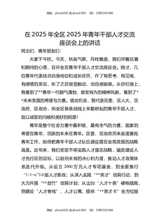 在2025年全区2025年青年干部人才交流座谈会上的讲话.docx