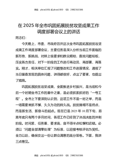 在2025年全市巩固拓展脱贫攻坚成果工作调度部署会议上的讲话.docx