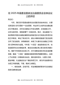 在2025年县委全面依法治县委员会全体会议上的讲话.docx