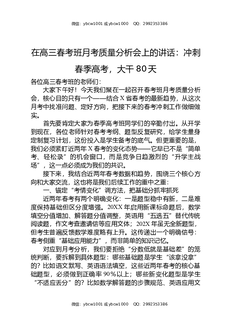 在高三春考班月考质量分析会上的讲话:冲刺春季高考,大干80天.docx