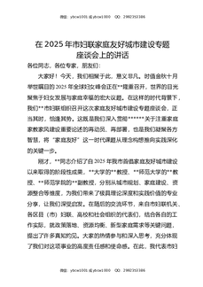 在2025年市妇联家庭友好城市建设专题座谈会上的讲话.docx