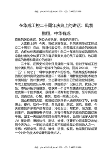 在XX二十周年庆典上的讲话:凤翥鹏翔,中华有成.docx