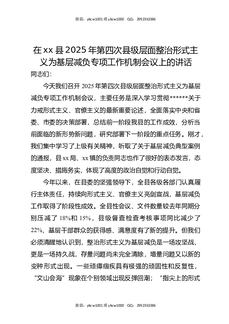 在XX县2025年第四次县级层面整治形式主义为基层减负专项工作机制会议上的讲话.docx