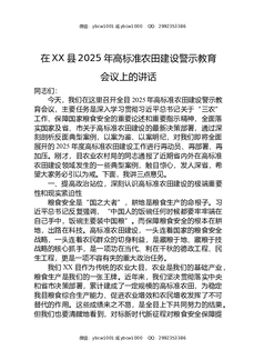 在XX县2025年高标准农田建设警示教育会议上的讲话.docx