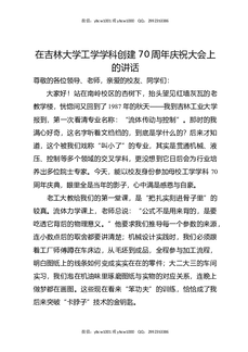 在XX大学工学学科创建70周年庆祝大会上的讲话.docx