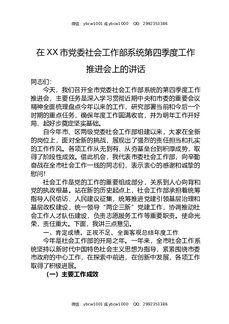 在XX市党委社会工作部系统第四季度工作推进会上的讲话.docx