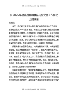 全县质量和食品药品安全工作会议上的讲话.docx