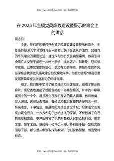 全镇党风廉政建设暨警示教育会上的讲话.docx