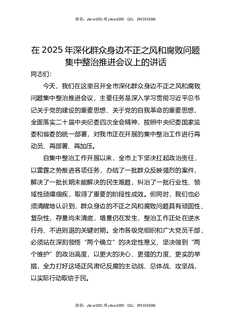 在2025年深化群众身边不正之风和腐败问题集中整治推进会议上的讲话.docx