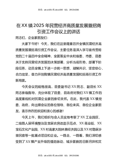 在XX镇2025年民营经济高质量发展暨招商引资工作会议上的讲话1.docx
