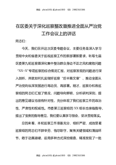 在区委关于深化巡察整改暨推进全面从严治党工作会议上的讲话.docx