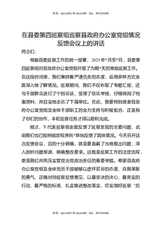在县委第四巡察组巡察县政府办公室党组情况反馈会议上的讲话.docx