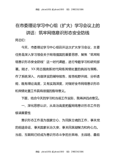 在市委理论学习中心组(扩大)学习会议上的讲话:筑牢网络意识形态安全防线.docx