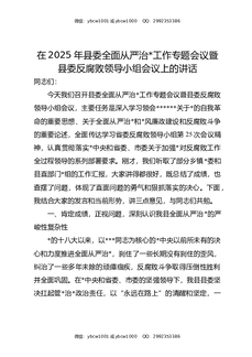 在2025年县委全面从严治党工作专题会议暨县委反腐败领导小组会议上的讲话.docx