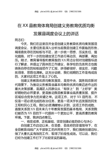 在XX县教育体育局创建义务教育优质均衡发展县调度会议上的讲话.docx