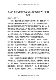 在XX市劳动模范和先进工作者表彰大会上的讲话.docx