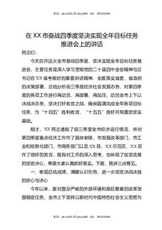 在XX市奋战四季度坚决实现全年目标任务推进会上的讲话.docx