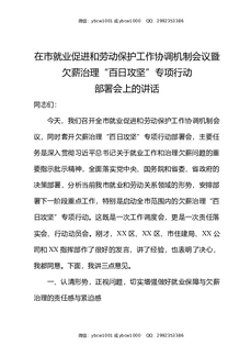 在市就业促进和劳动保护工作协调机制会议暨欠薪治理百日攻坚专项行动部署会上的讲话.docx