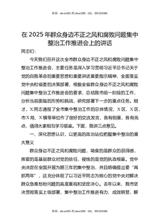 在2025年群众身边不正之风和腐败问题集中整治工作推进会上的讲话.docx