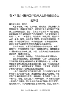 在XX县乡村振兴工作党外人士协商座谈会上的讲话.docx