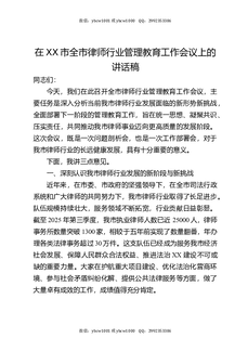在XX市全市律师行业管理教育工作会议上的讲话稿.docx