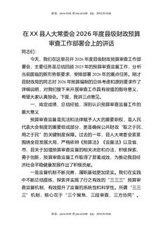 在XX县人大常委会2026年度县级财政预算审查工作部署会上的讲话.docx