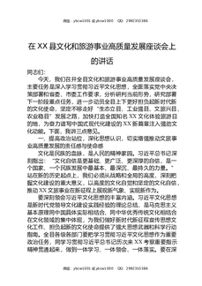 在XX县文化和旅游事业高质量发展座谈会上的讲话.docx