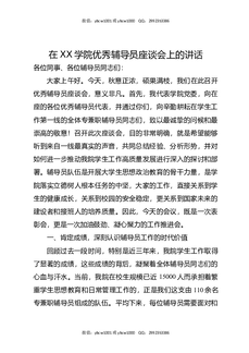在XX学院优秀辅导员座谈会上的讲话.docx