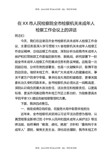 在XX市人民检察院全市检察机关未成年人检察工作会议上的讲话.docx