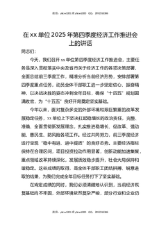 在XX单位2025年第四季度经济工作推进会上的讲话.docx