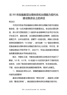 在XX市加强基层治理体系和治理能力现代化建设推进会上的讲话.docx
