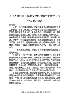 在XX港区第三季度安全环保和平安稳定工作会议上的讲话.docx