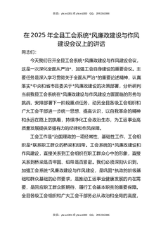 在2025年全县工会系统党风廉政建设与作风建设会议上的讲话.docx