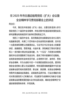在2025年市交通运输局党组(扩大)会议暨全会精神学习贯彻部署会上的讲话(四中).docx