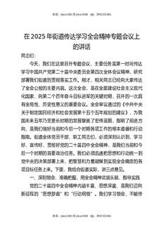 在2025年街道传达学习全会精神专题会议上的讲话(四中).docx