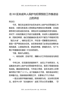 在XX区未成年人保护与犯罪预防工作推进会上的讲话.docx