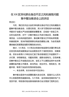 在XX区深化群众身边不正之风和腐败问题集中整治推进会上的讲话.docx