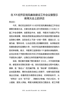在XX经开区党风廉政建设工作会议暨警示教育大会上的讲话.docx