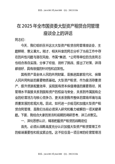 在2025年全市国资委大型资产租赁合同管理座谈会上的讲话.docx