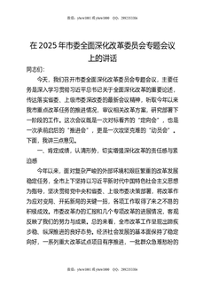 在2025年市委全面深化改革委员会专题会议上的讲话.docx