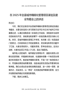 全县城市精细化管理项目谋划及建设专题会上的讲话.docx