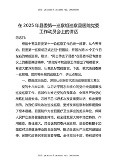 在2025年县委第一巡察组巡察县医院党委工作动员会上的讲话.docx