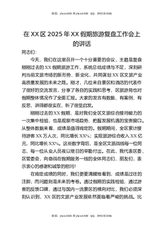 在XX区2025年XX假期旅游复盘工作会上的讲话.docx