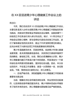 在XX区促进青少年心理健康工作会议上的讲话.docx