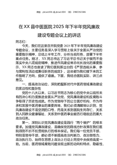 在XX县中医医院2025年下半年党风廉政建设专题会议上的讲话.docx