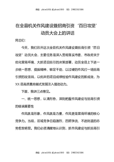 在全县机关作风建设暨招商引资百日攻坚动员大会上的讲话.docx