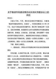 在关于推进作风建设常态化长效化专题会议上的讲话.docx