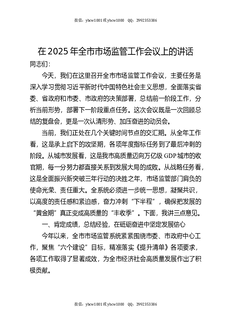 全市市场监管工作会议上的讲话.docx